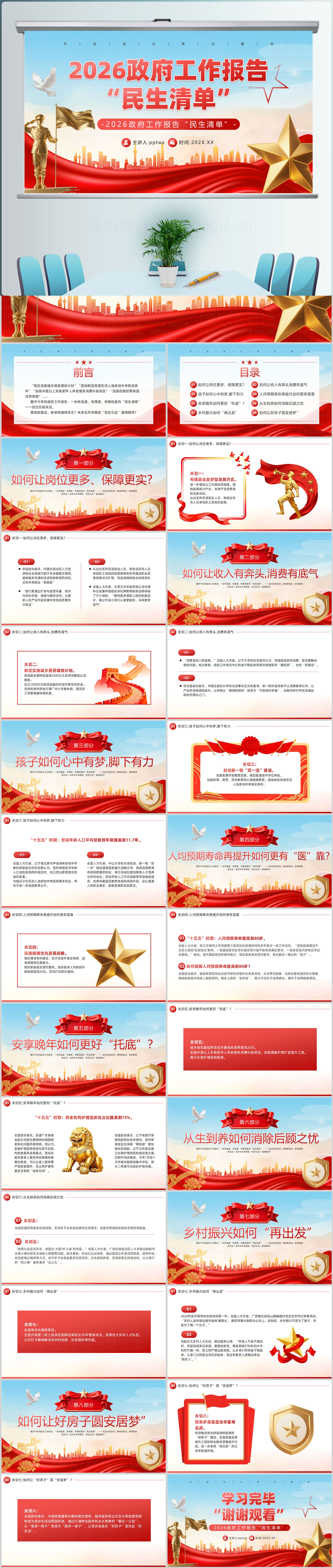 2026政府工作报告学习内容解读ppt模板(内含WOR
