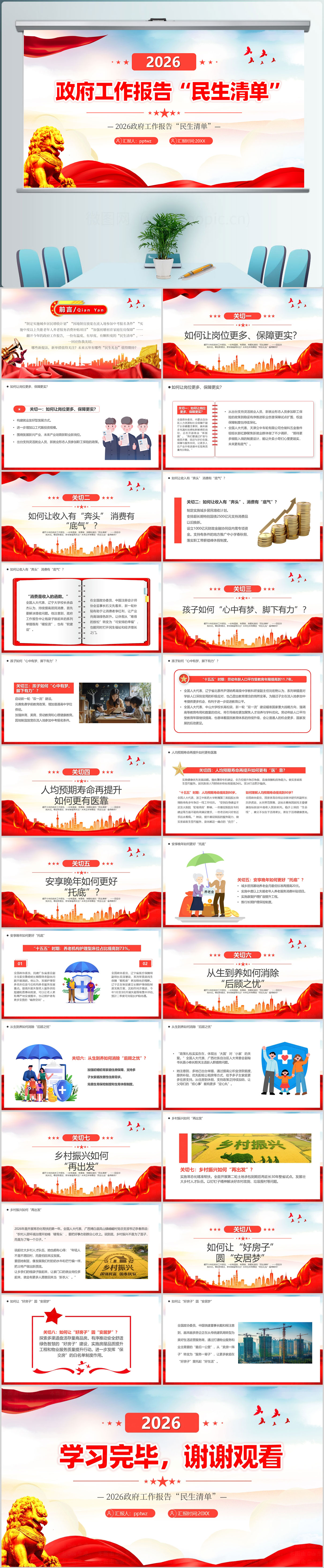 2026全国两会政府工作报告民生清单解读ppt模板