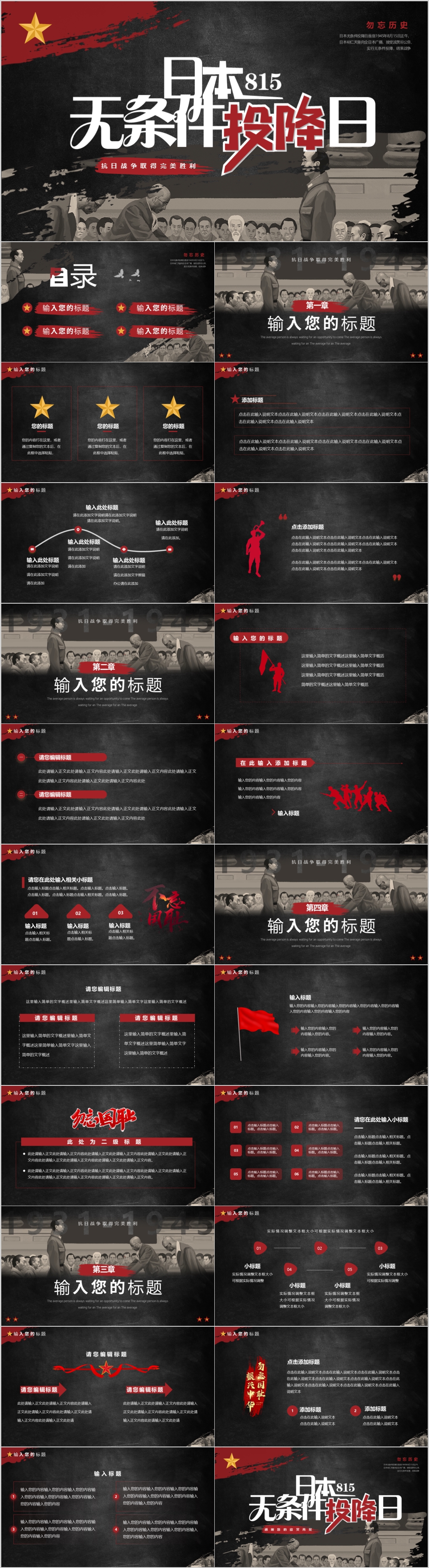 红色纪念抗战胜利暨日本投降80周年课件ppt 模板