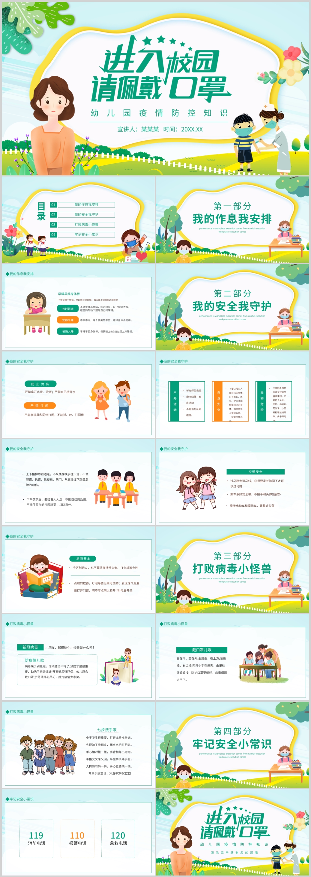 卡通中小学生进校戴口罩疫情防疫知识培训主题班会PPT模板