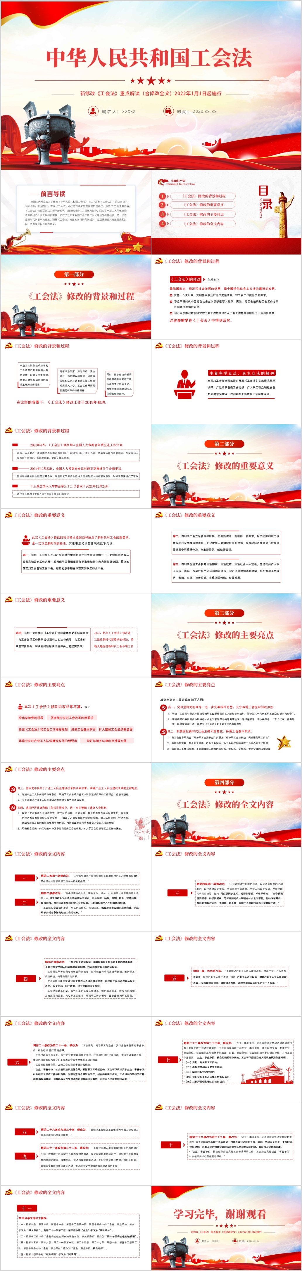 2022年新修订中华人民共和国工会法PPT模板(内含