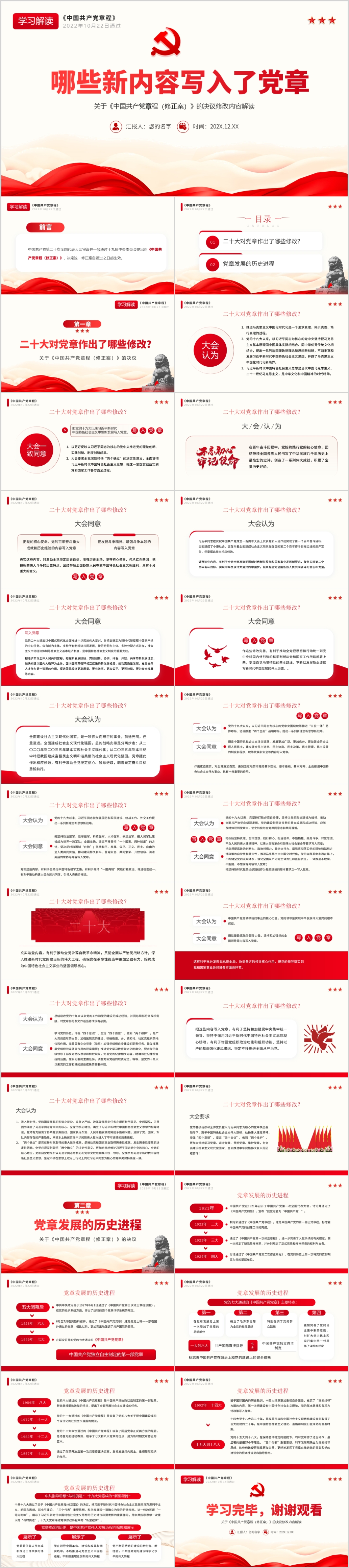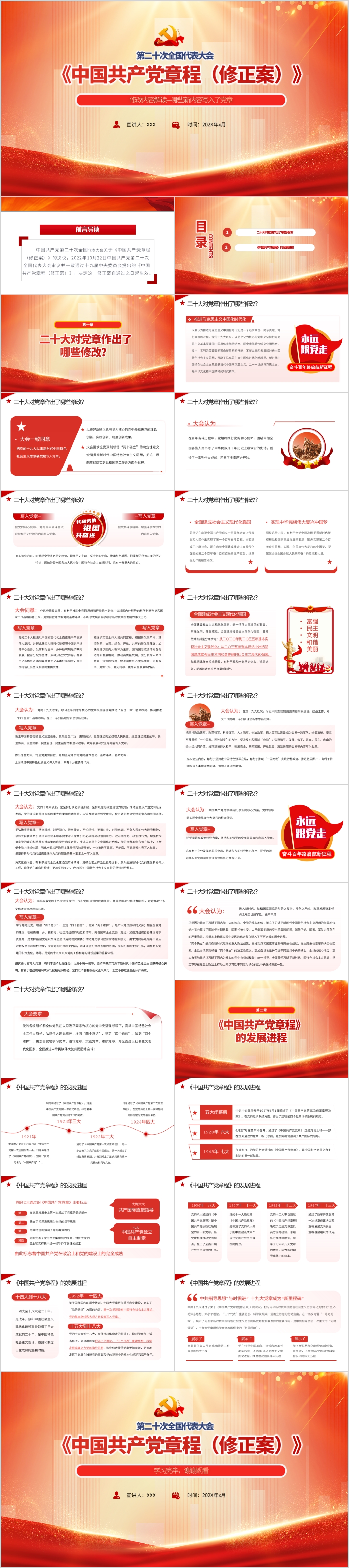 2022关于中国共产党章程新修改史解读党课ppt模板