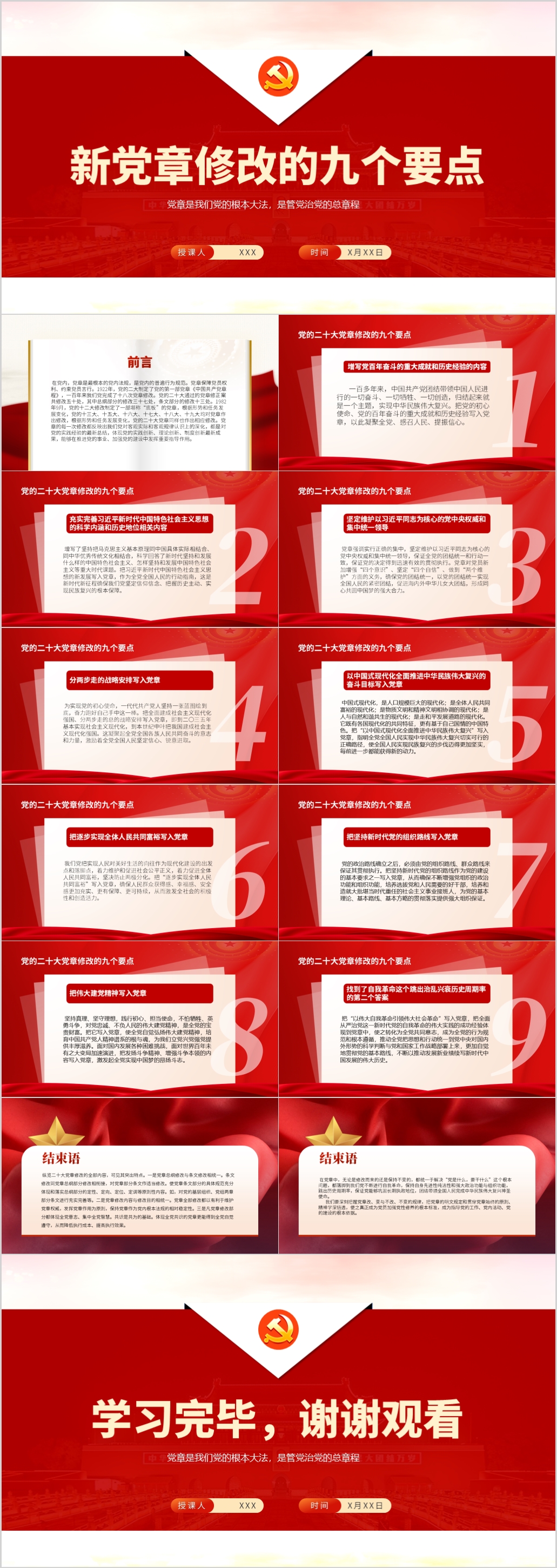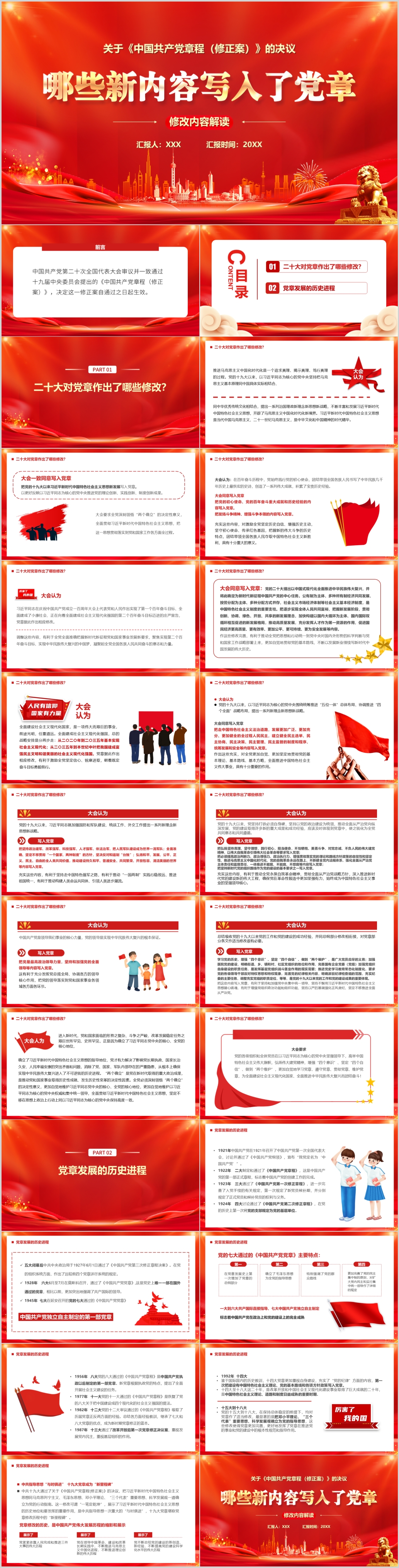 > 2022党章做了那些修改内容新党章学习解读党课ppt模板(内含WORD演讲稿)