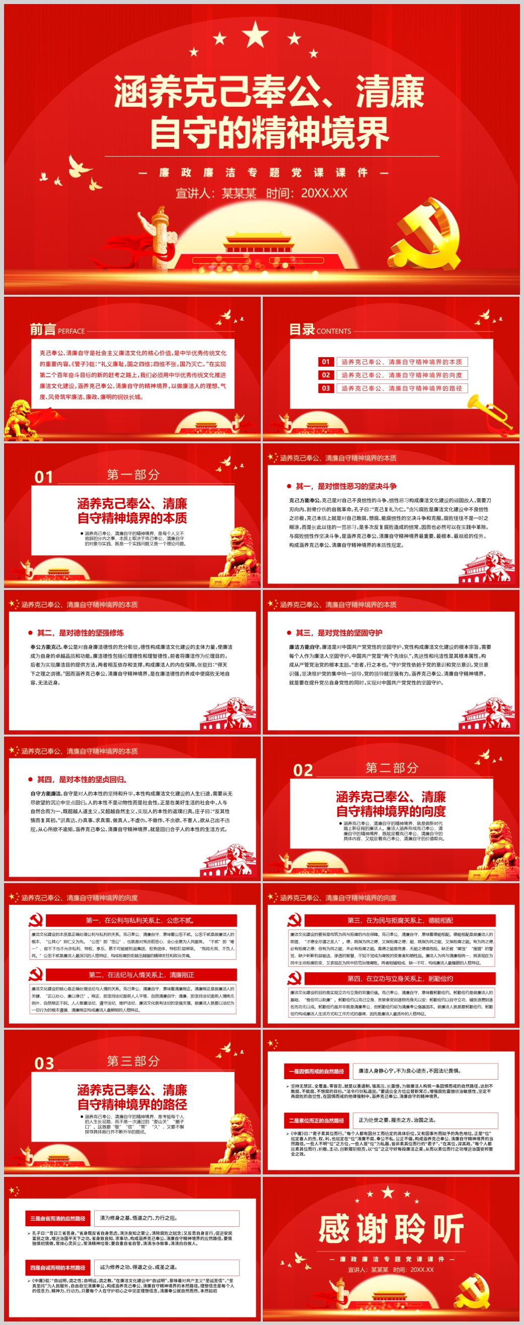 2022年清廉自守的精神廉政廉洁专题党课PPT模板(