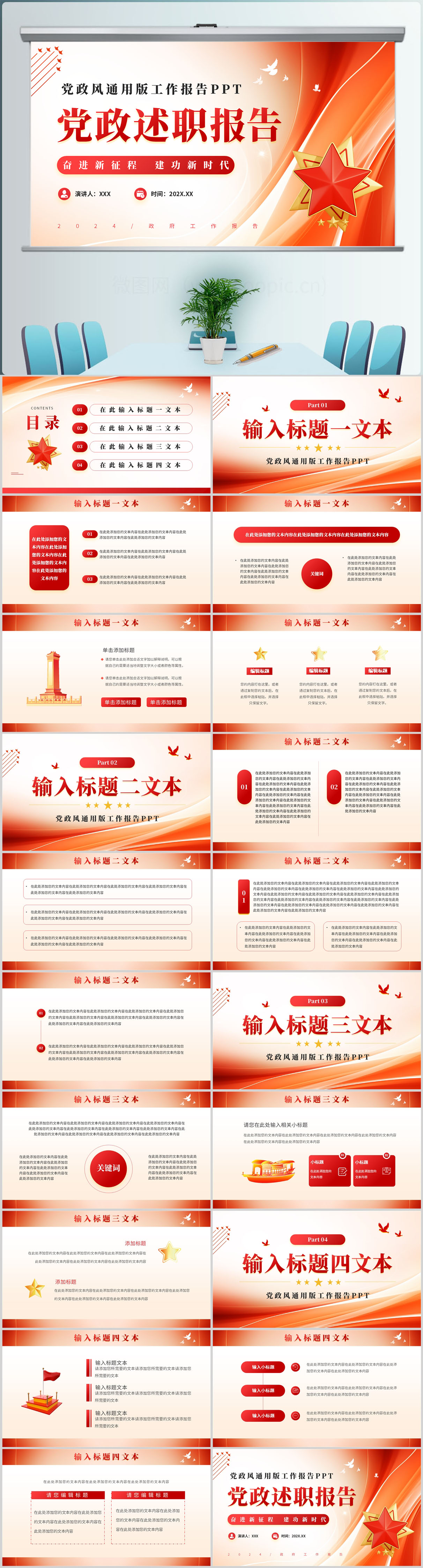 蓝色党政风聚集时事政治热点工作汇报通用ppt模板