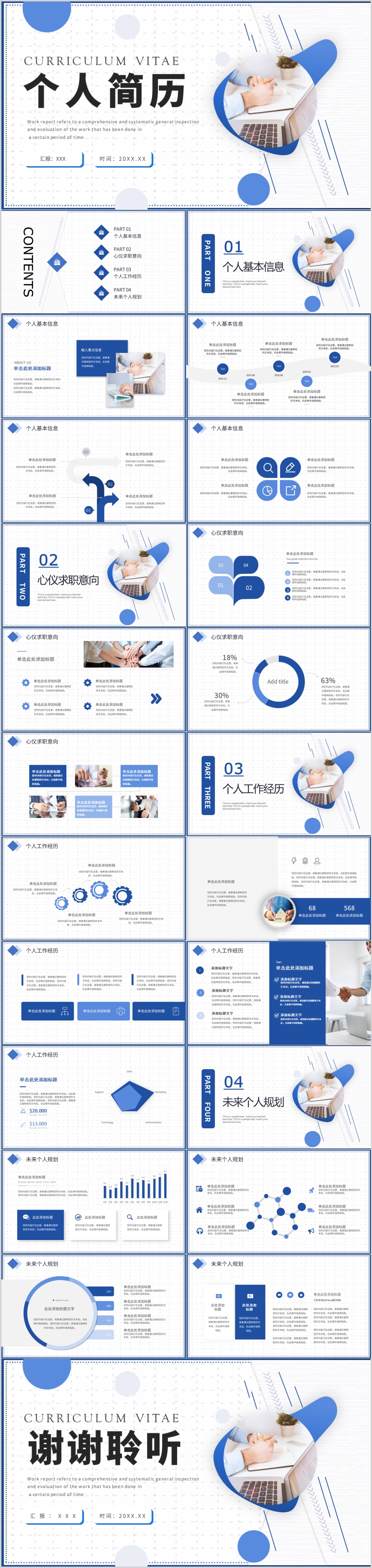 蓝色简约商务个人简历自我介绍岗位竞聘ppt模板