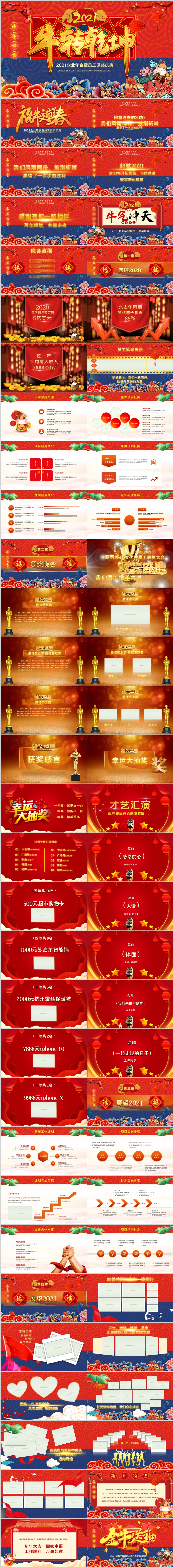 > 2021中国风喜庆新年春节颁奖表彰晚会牛年年会ppt模板