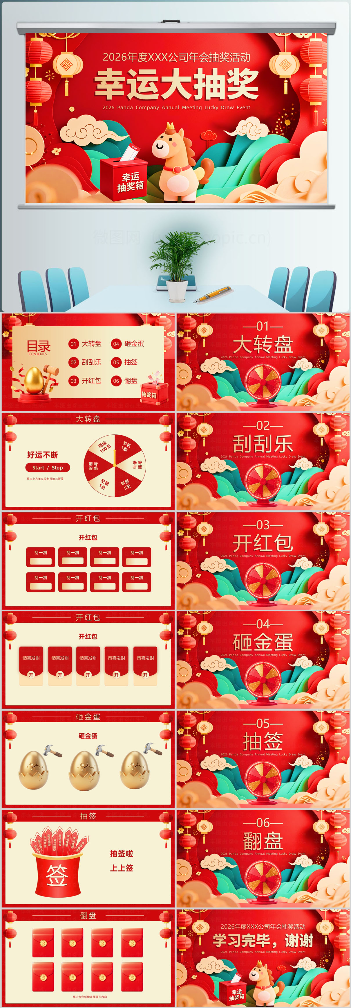 2026红色简约风马年幸运大抽奖活动介绍PPT模板