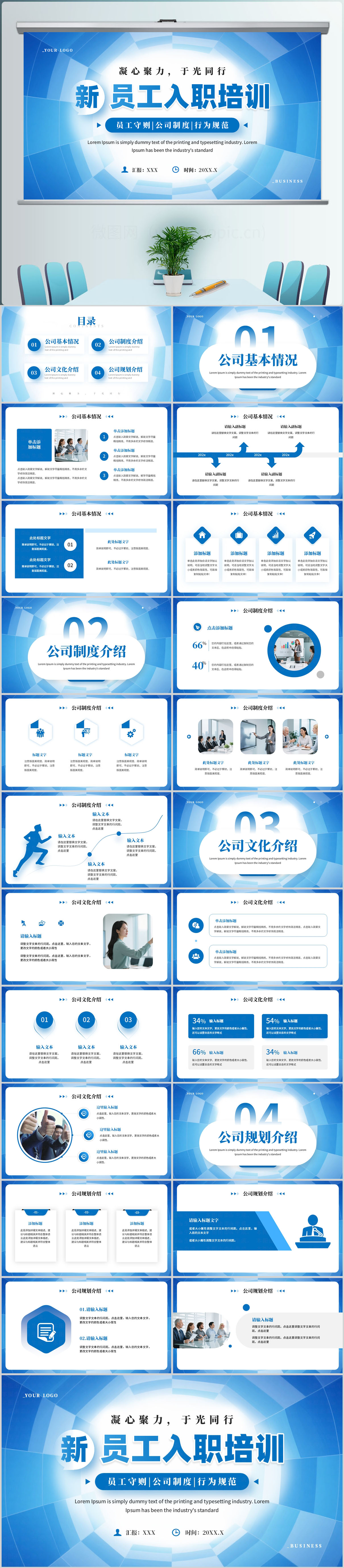 蓝色简约新员工入职培训课件ppt模板