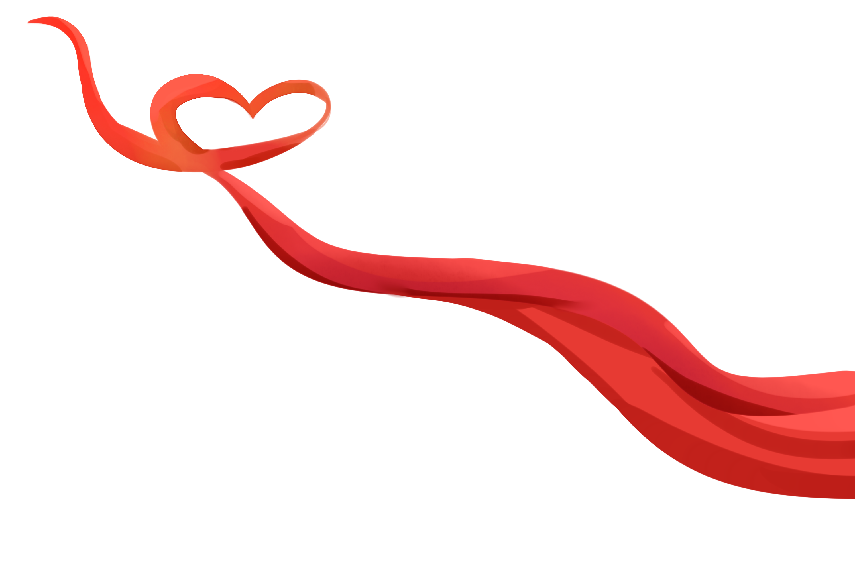 红色爱心丝绸丝带免扣PNG元素PPT素材插画