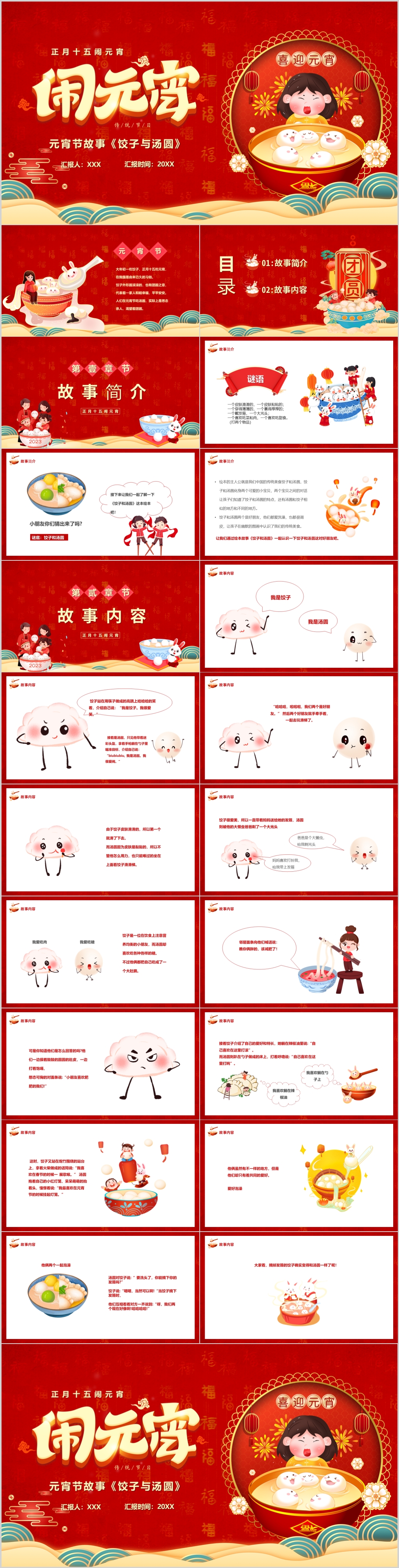 红色喜庆2023年兔年春节新年正月十五闹元宵节猜灯谜PPT模板