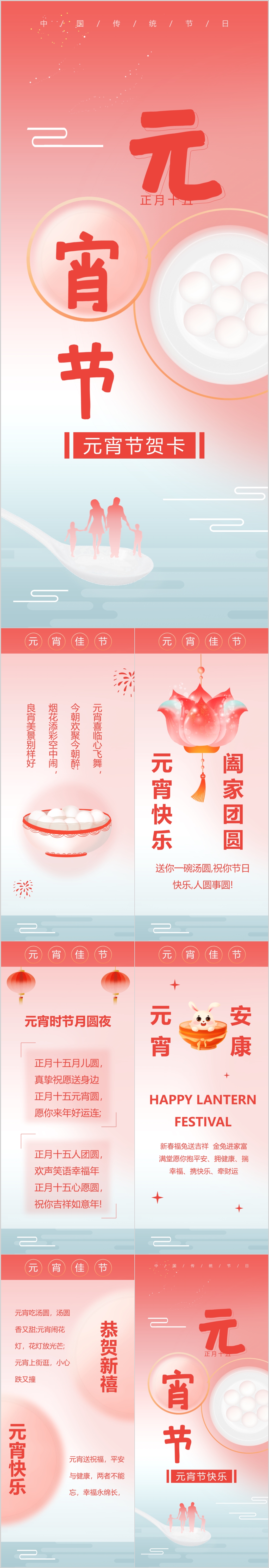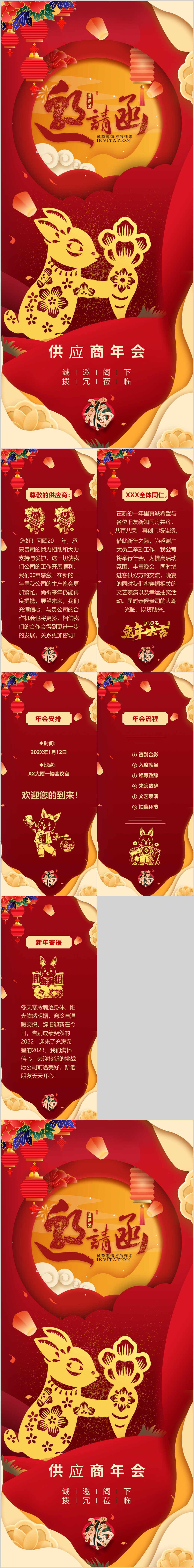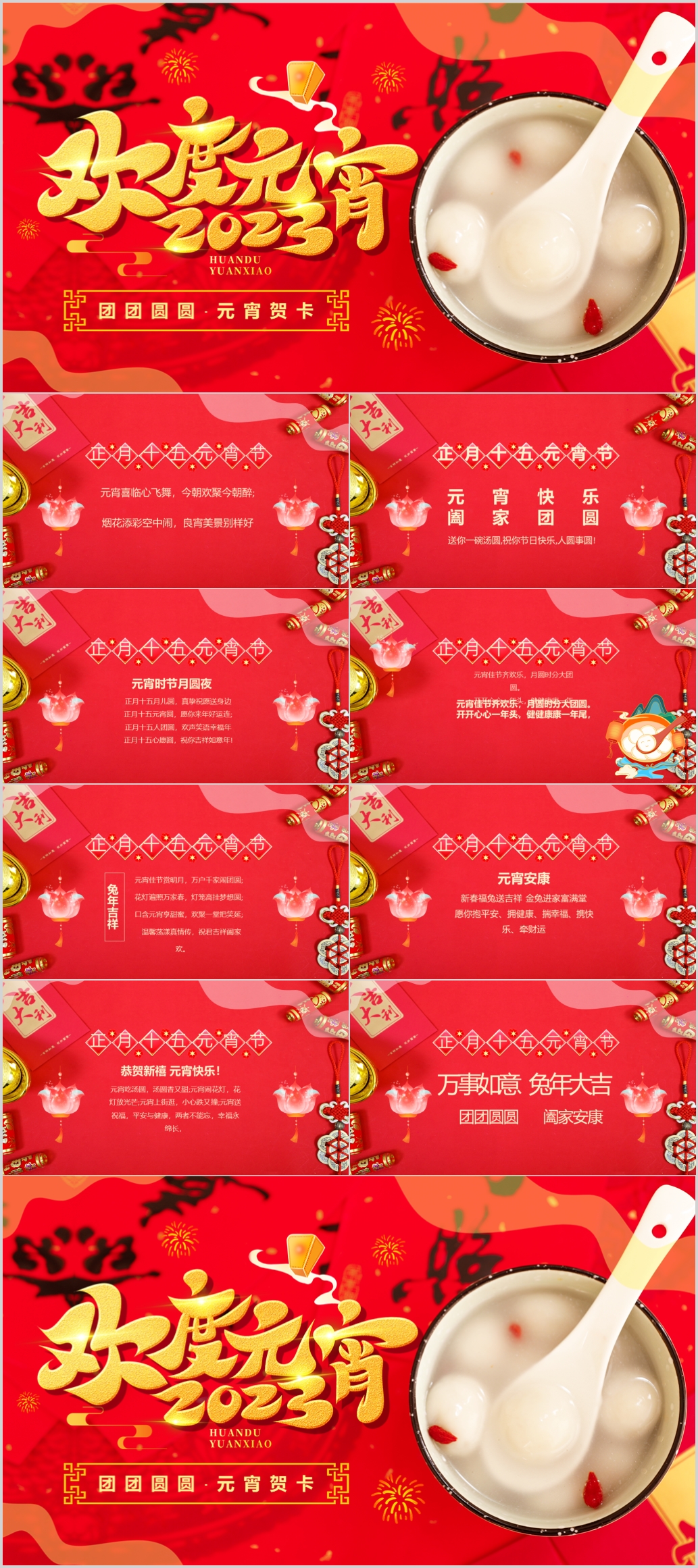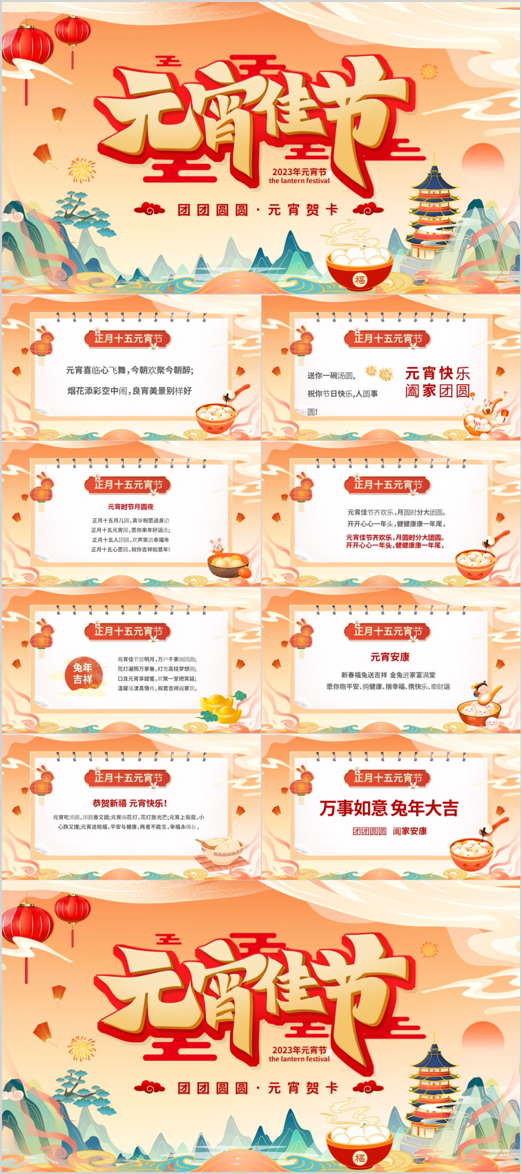 2023年竖立手机微信兔年春节新年元旦元宵节祝福贺卡PPT模板
