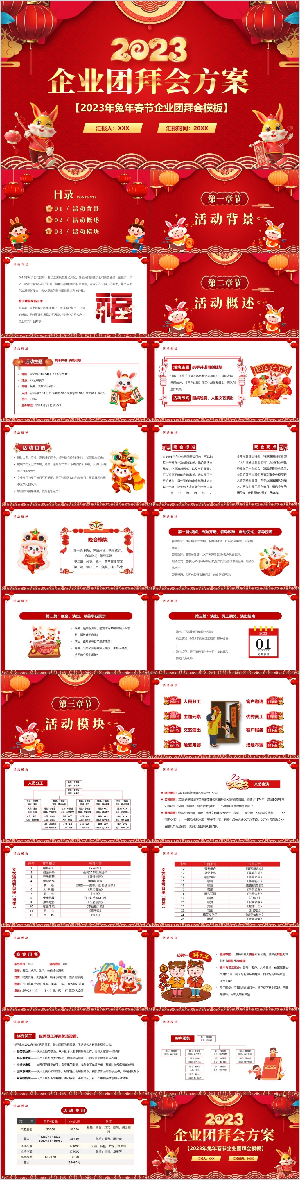 2023红色喜庆兔年年会企业团拜会新年通用PPT模板