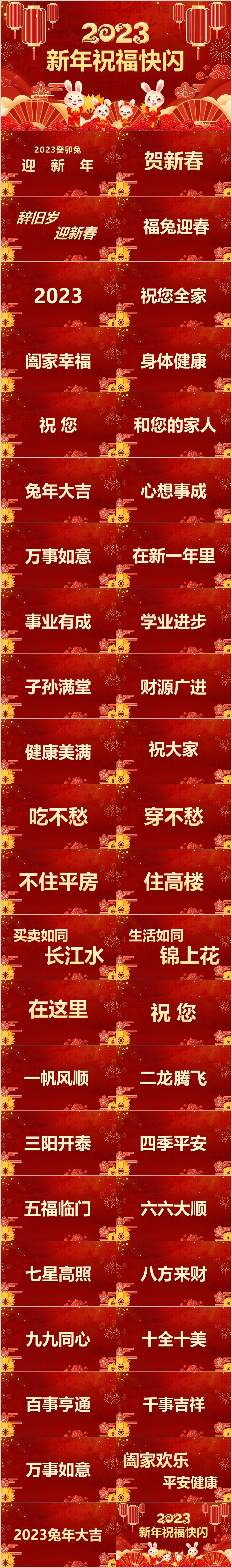 2023红色兔年新年春节祝福语开场快闪ppt模板