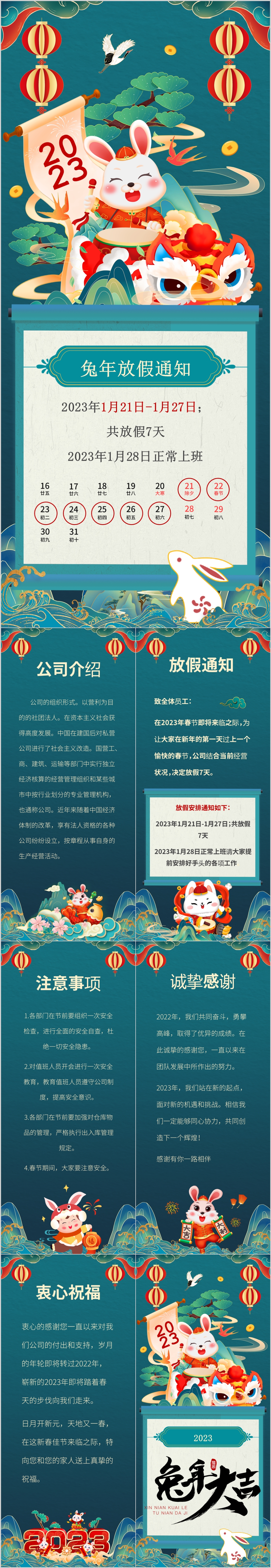 2023中国风竖立手机微信新年春节放假通知通用ppt模板