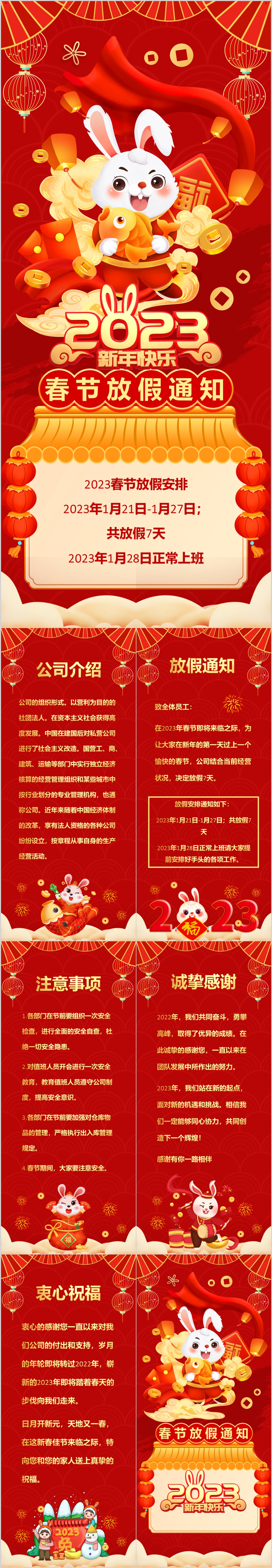 2023红色喜庆竖立手机微信新年春节放假通知ppt模板