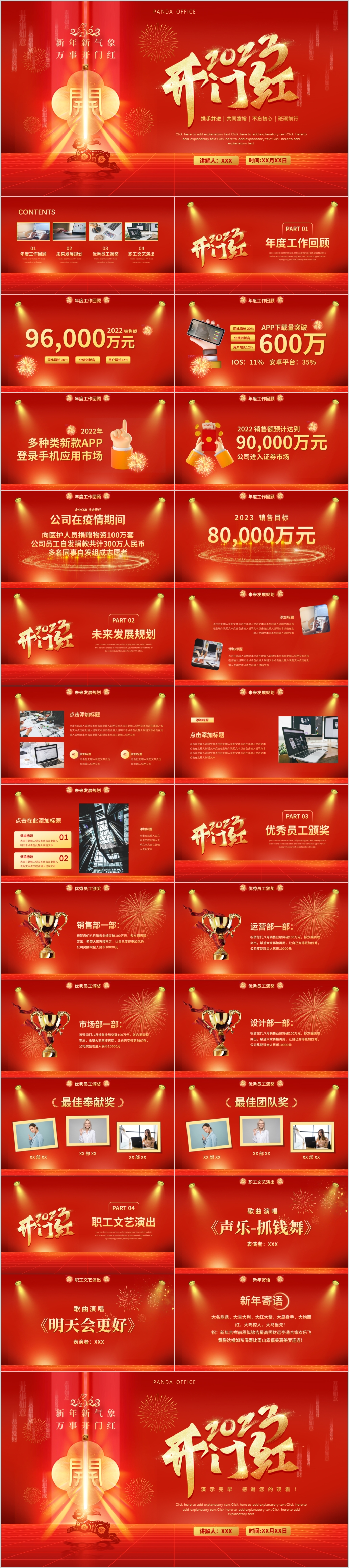 2023红色新年新气象企业开门红新年计划开工大吉ppt模板
