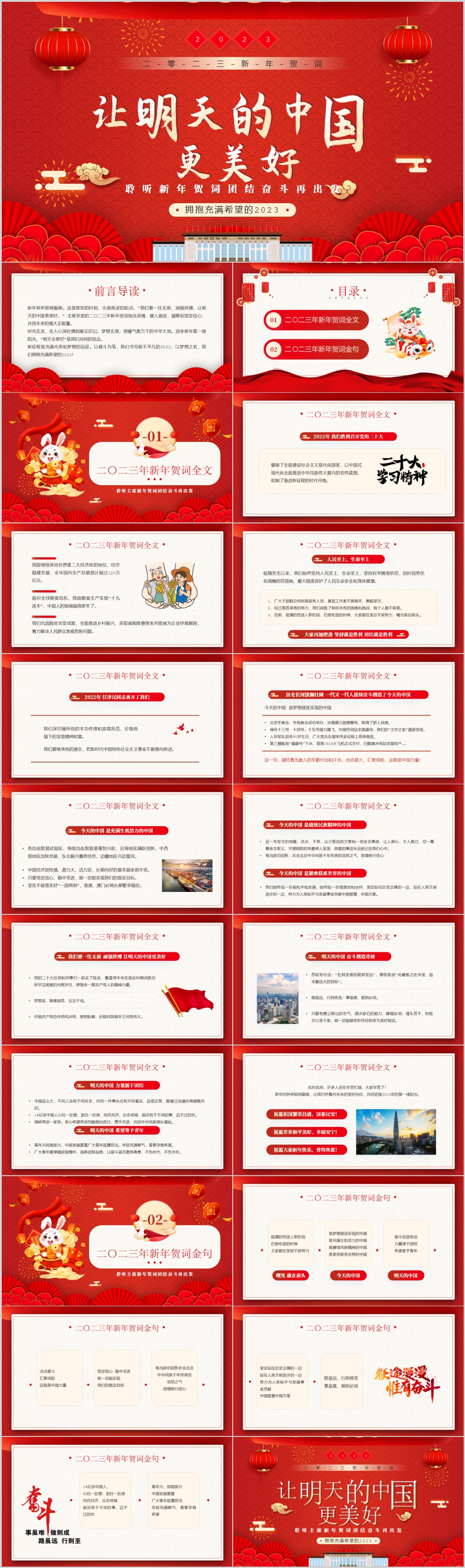 让明天的中国更美好2023年新年贺词主题宣传PPT模板