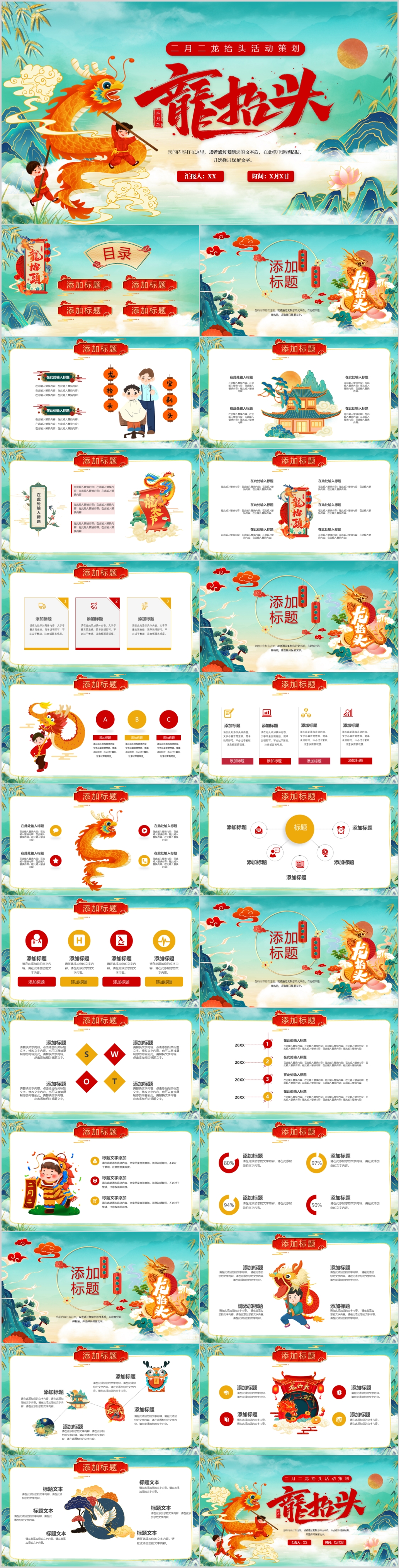 国潮风二月二龙抬头活动策划方案主题宣传ppt模板