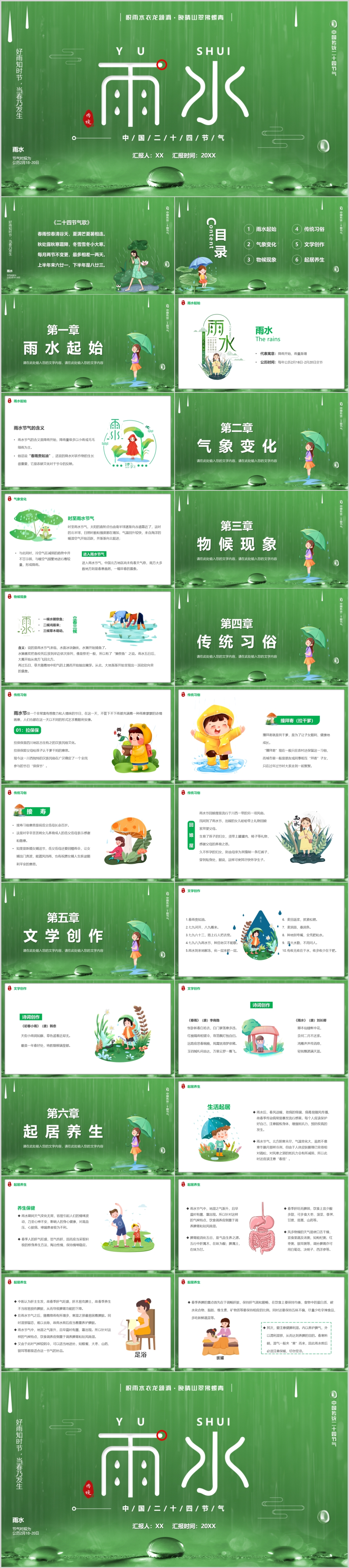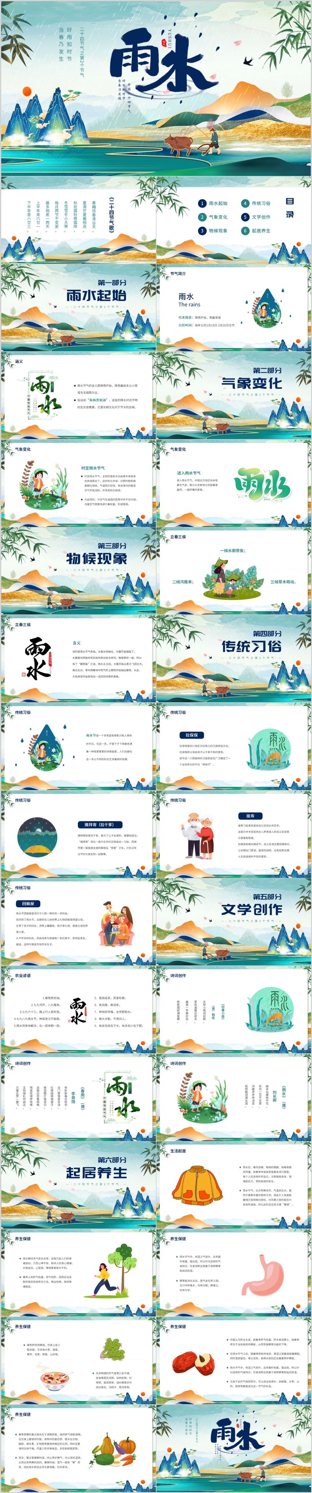 绿色大气春季二十四节气谷雨雨水主题宣传课件PPT模板