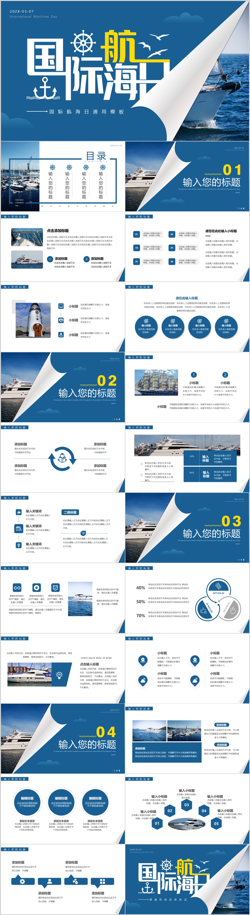 2023年蓝色国际航海日商务通用主题介绍宣传ppt模板