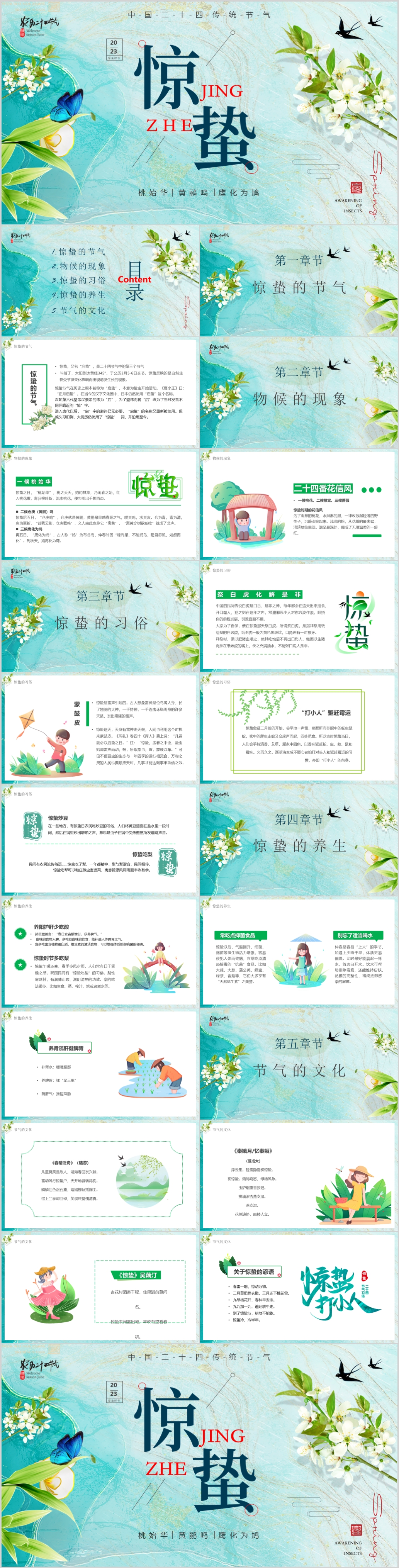 中国风二十四节气惊蛰主题介绍ppt模板