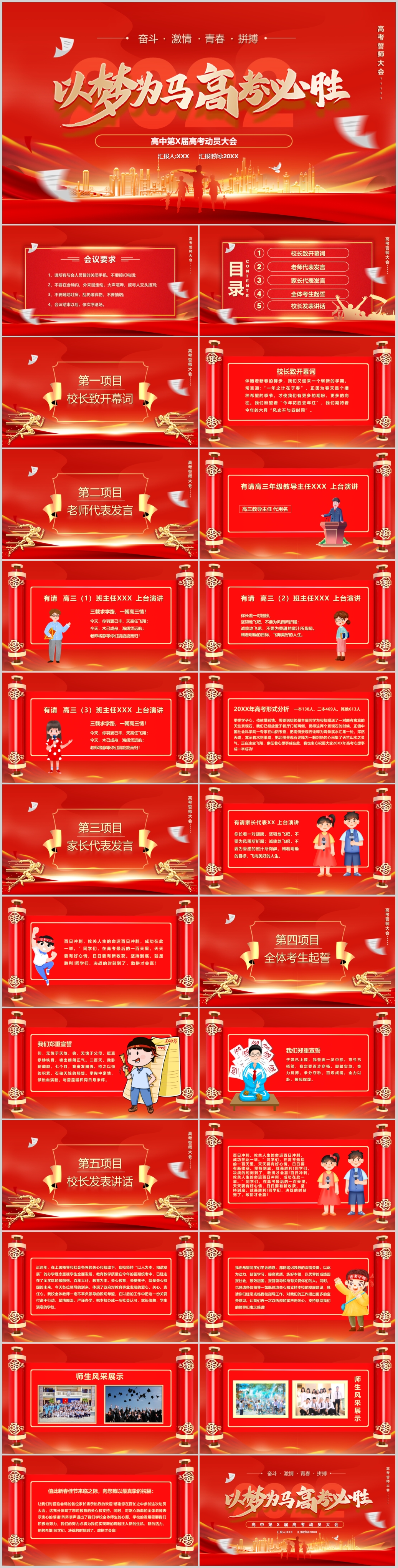 红色为梦想而战高考必胜高考倒计时誓师动员大会ppt模板