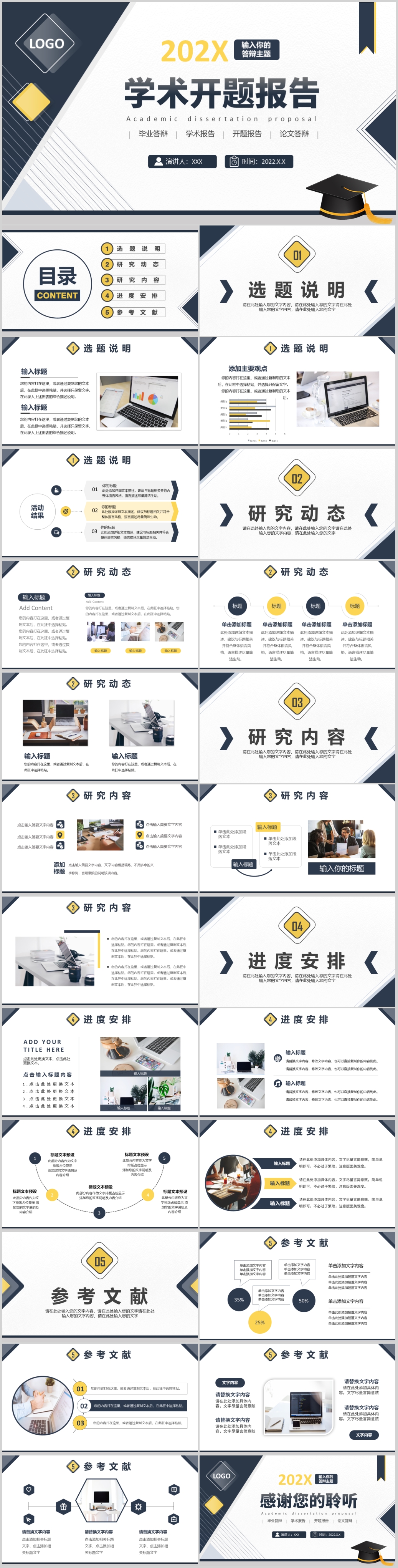 蓝色简约论文毕业答辩学术开题报告ppt模板