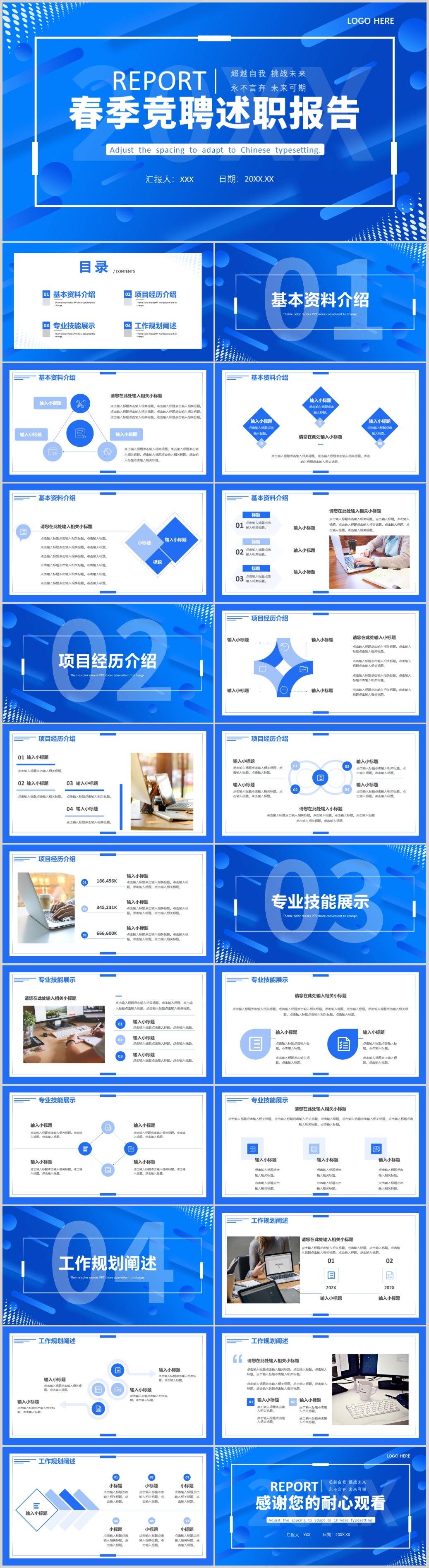 蓝色个人简历面试自我介绍岗位竞聘演讲PPT模板