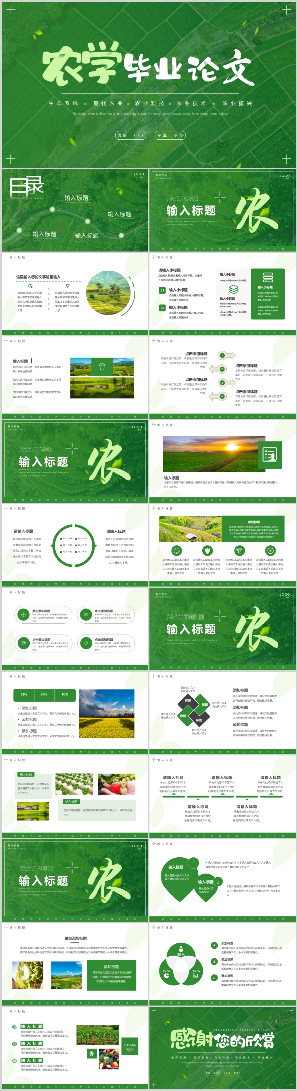 清新绿色简约农学论文毕业答辩开题报告ppt模板