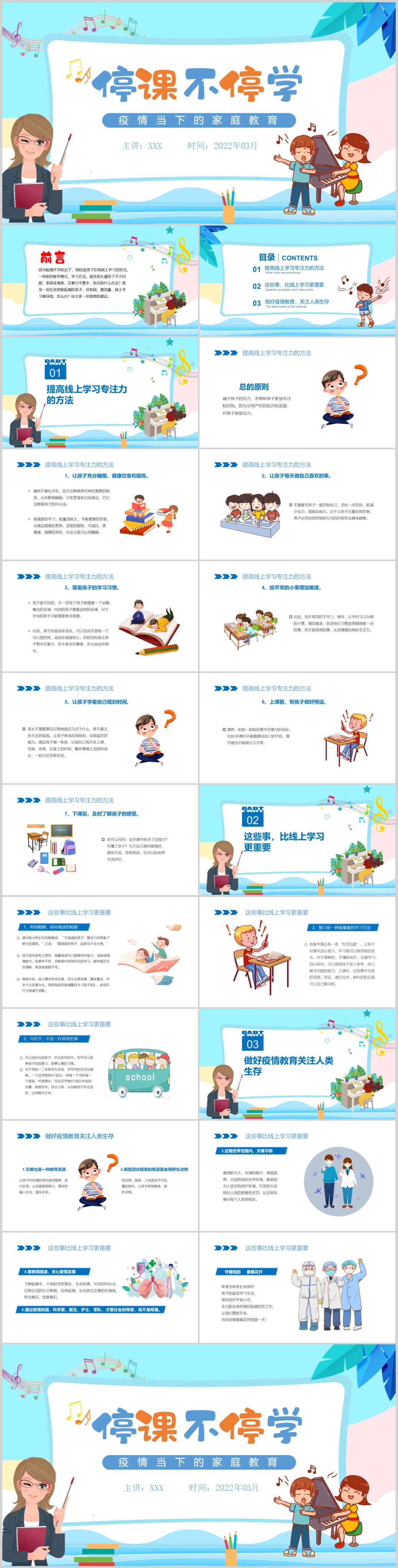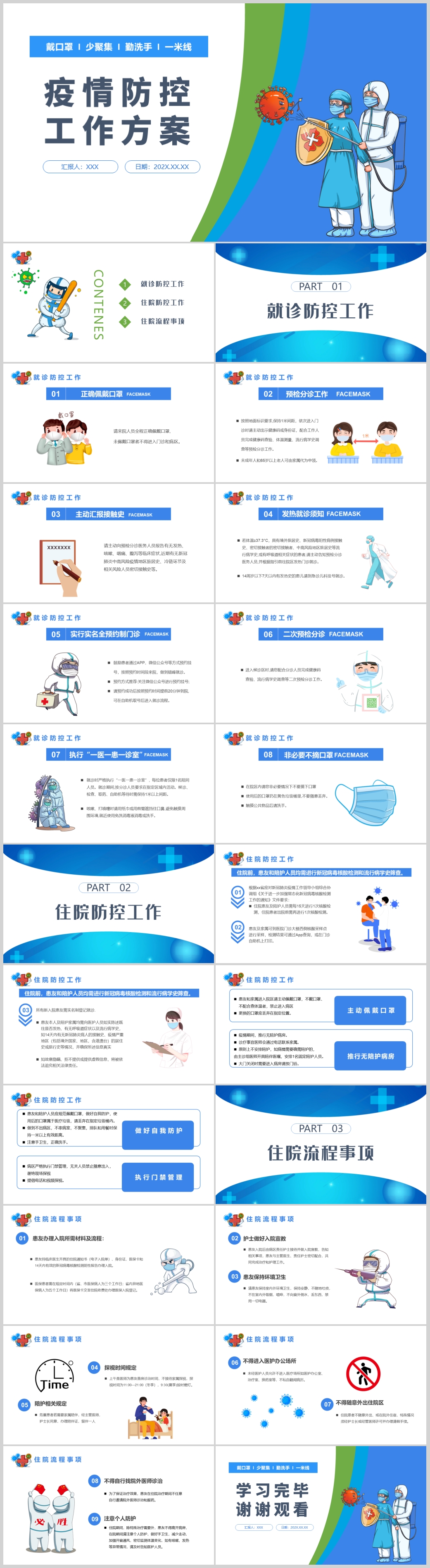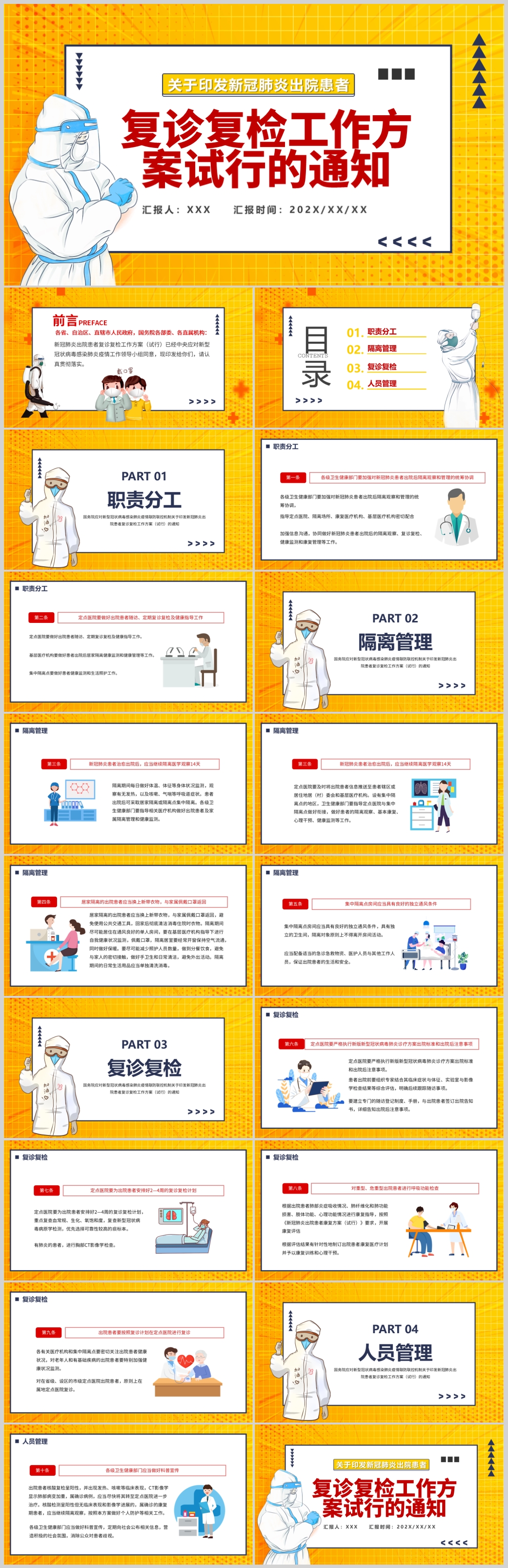 2022卡通复工复诊工作方案教育培训课件PPT模板(内含WORD演讲稿)
