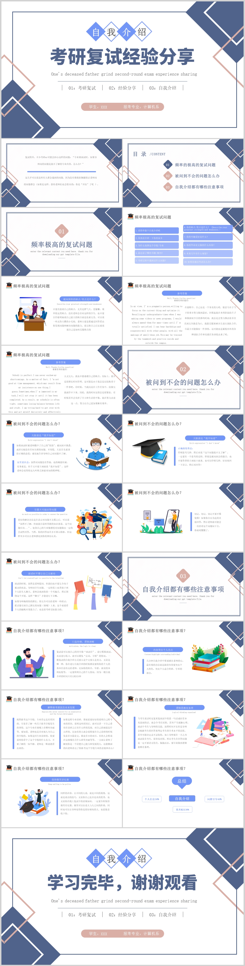 2022简约大气毕业论文自我介绍考研经验分享会动态PPT模板