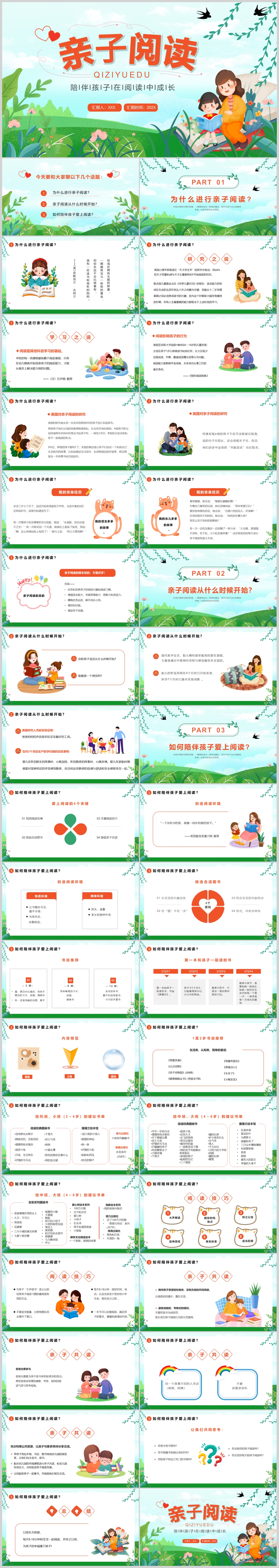清新儿童卡通可爱幼儿园读书教育培训ppt模板