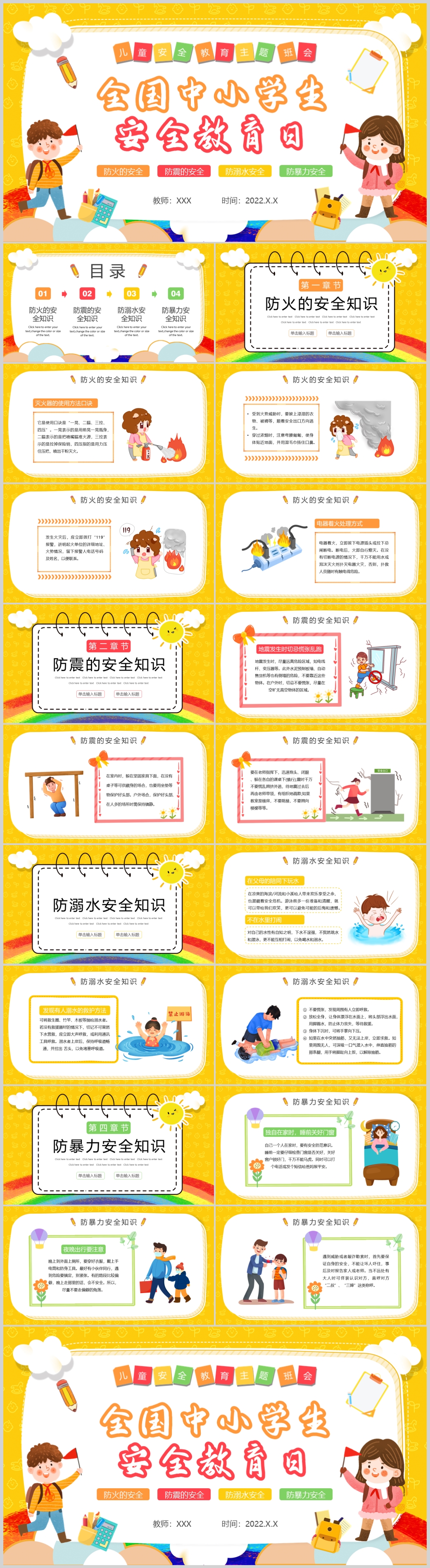 卡通儿童可爱全国学生校园安全教育日ppt模板