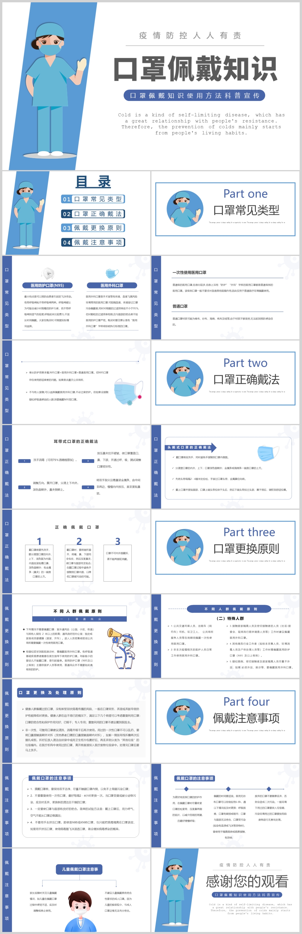 口罩佩戴知识使用方法科普宣传主题班会课件PPT模板