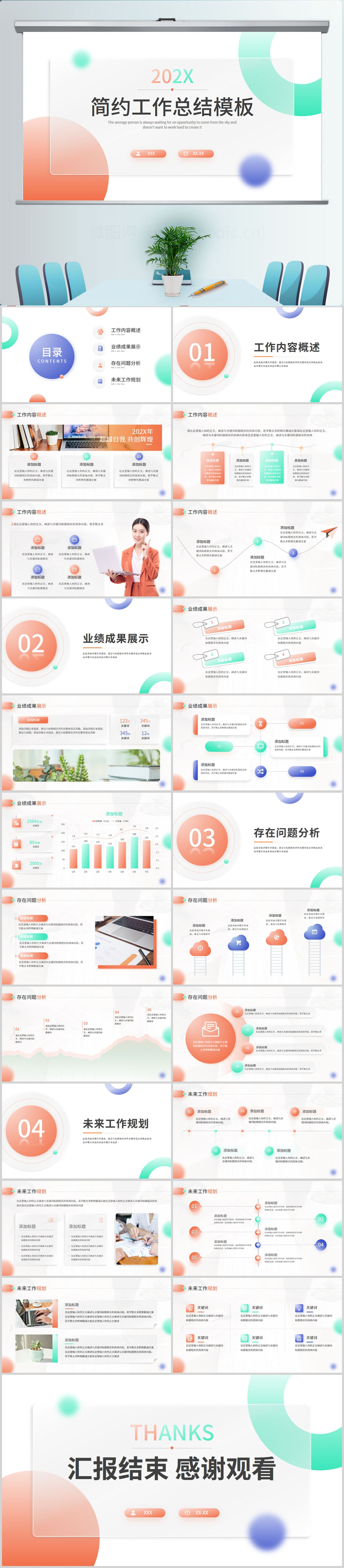 简约商务季度年度年终工作汇报总结ppt模板设计