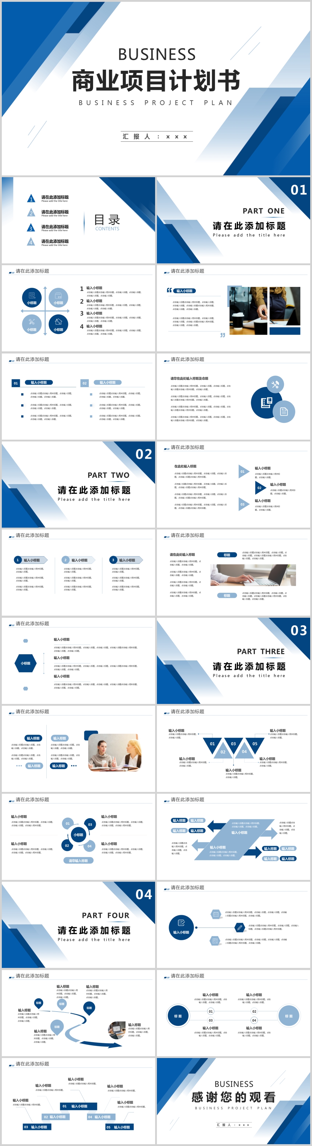 蓝色简约工作汇报年终总结年中总结动态ppt模板