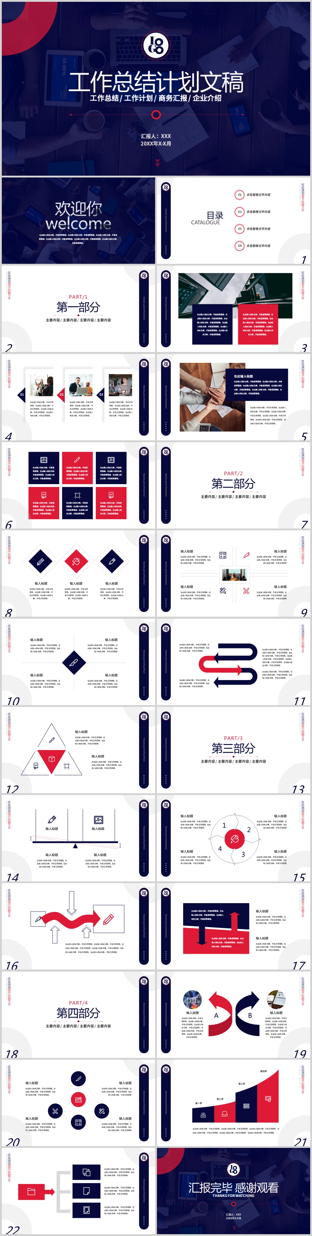 2021红色商务简约年终总结工作汇报计划ppt模板