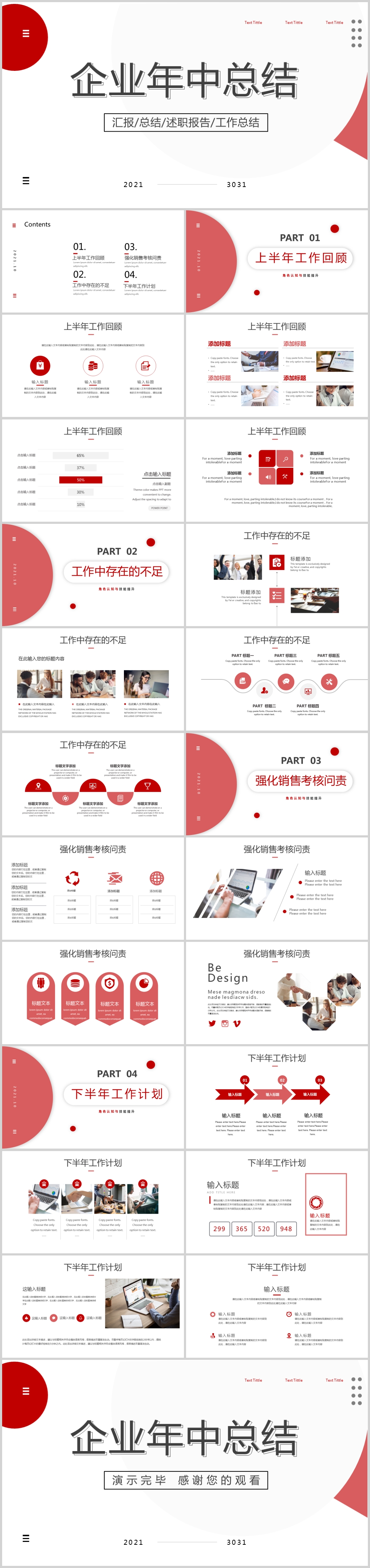2021红色商务简约年终总结工作汇报计划ppt模板