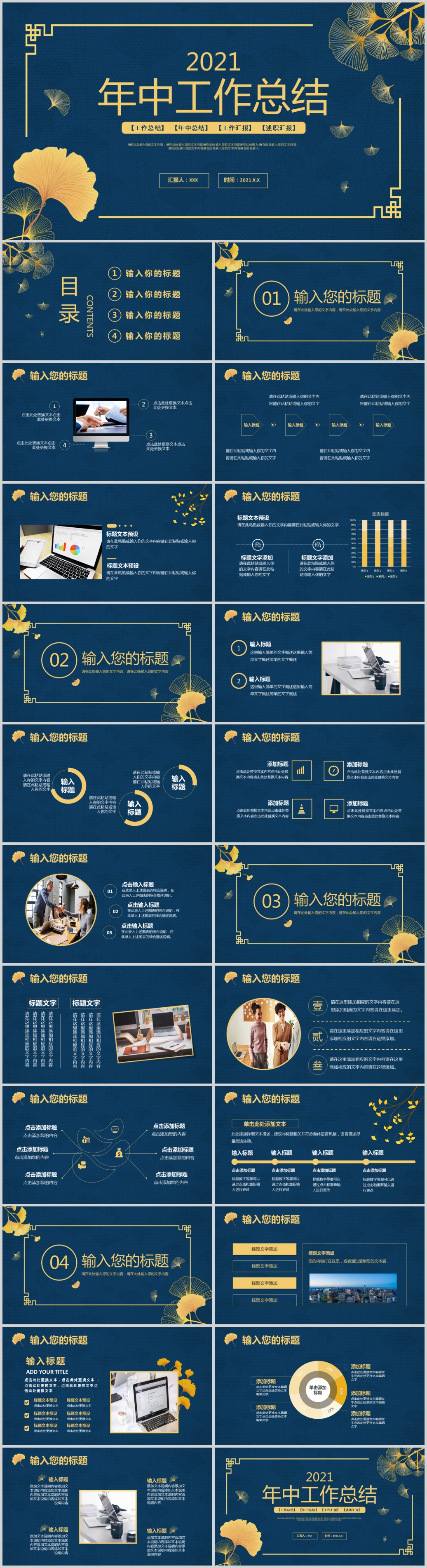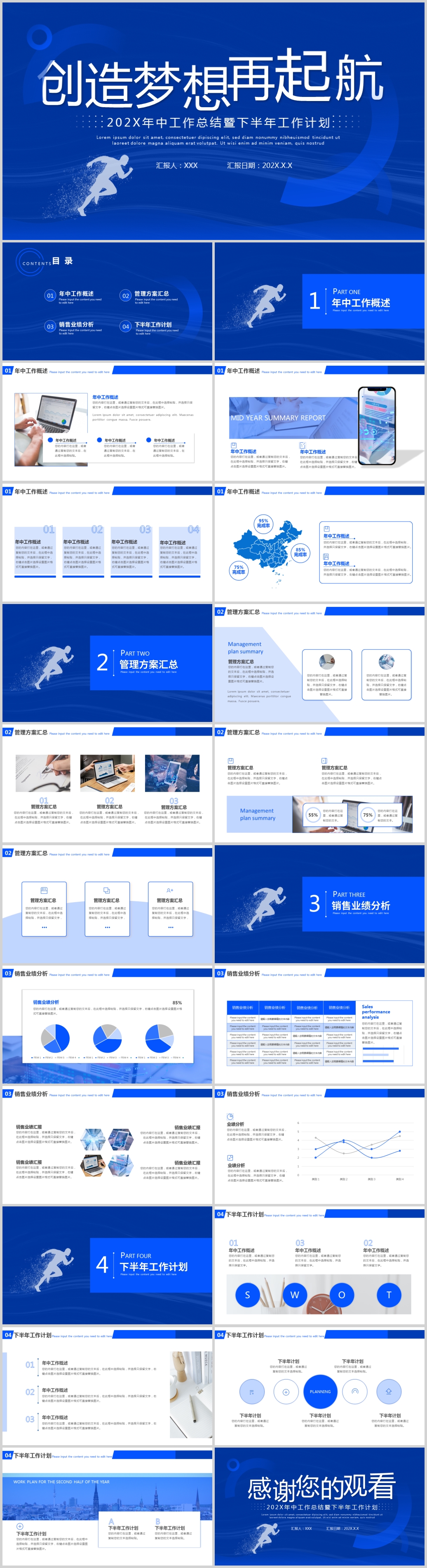蓝色简约工作汇报年终总结年中总结动态ppt模板