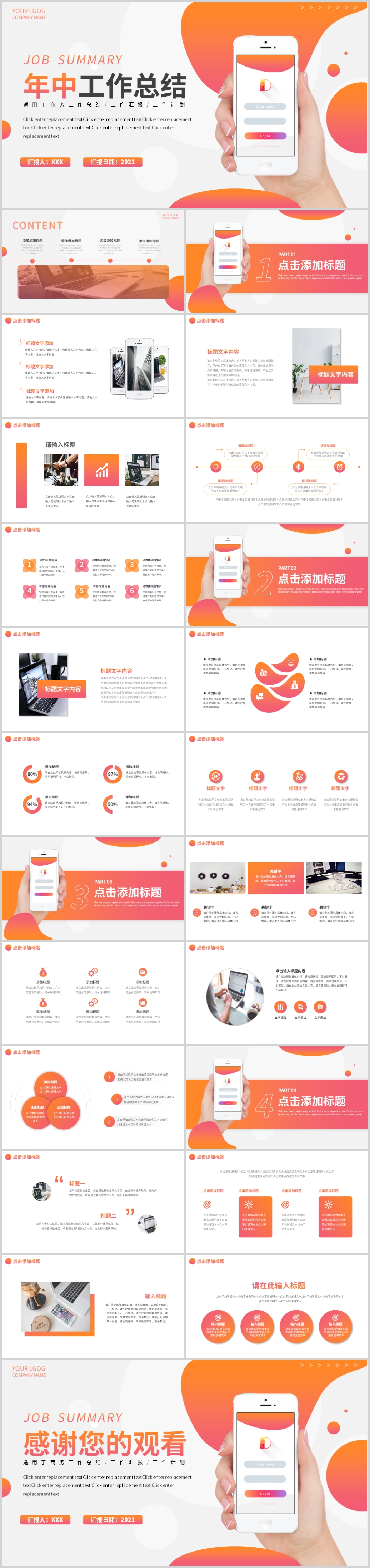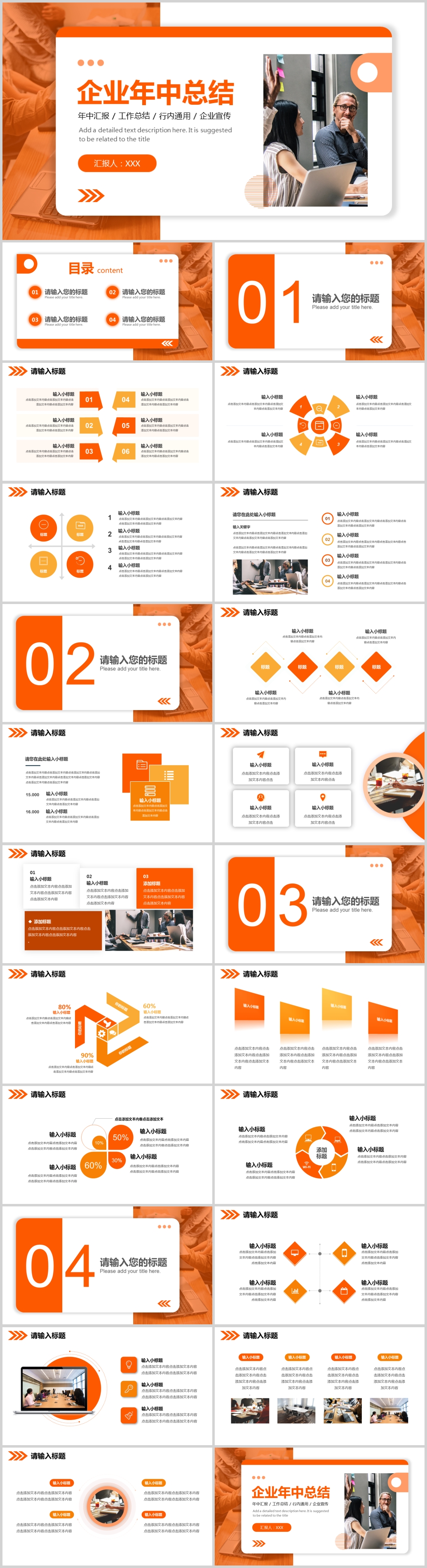 橙色商务年中工作总结汇报动态PPT模板