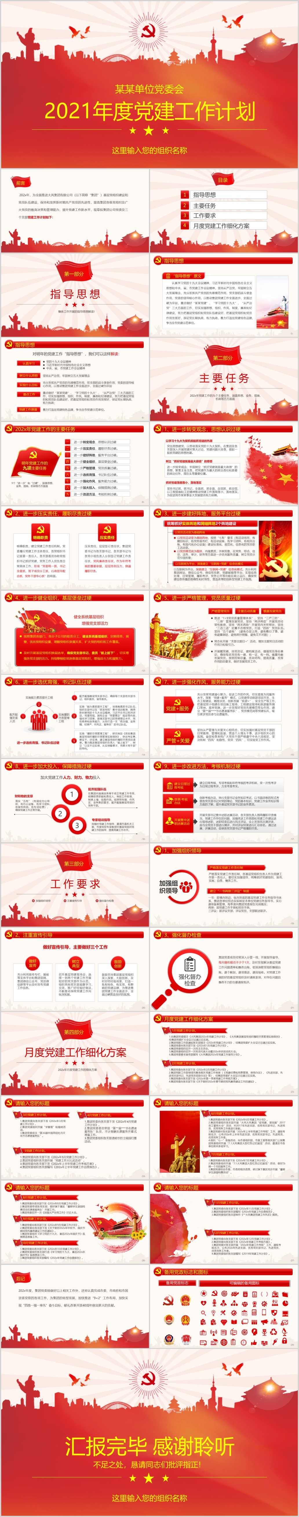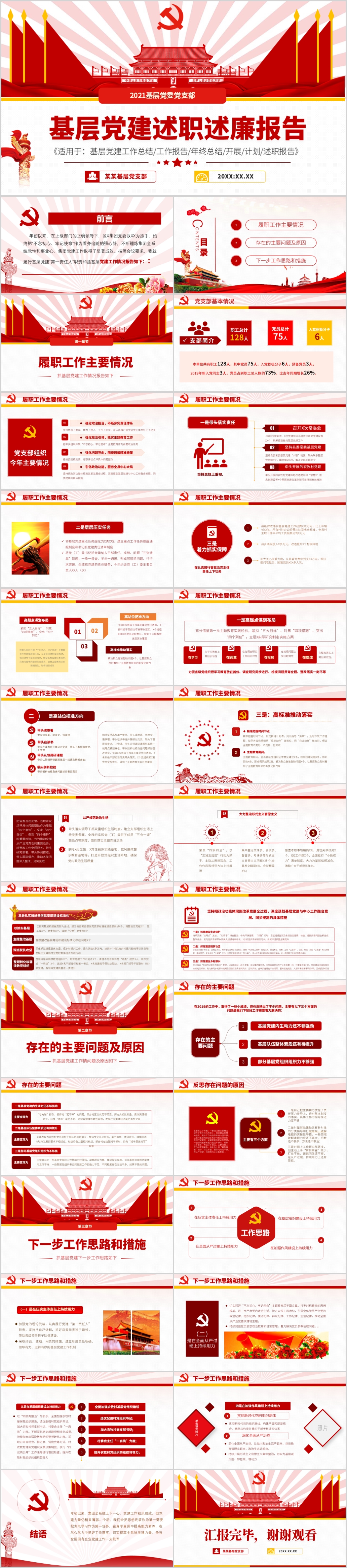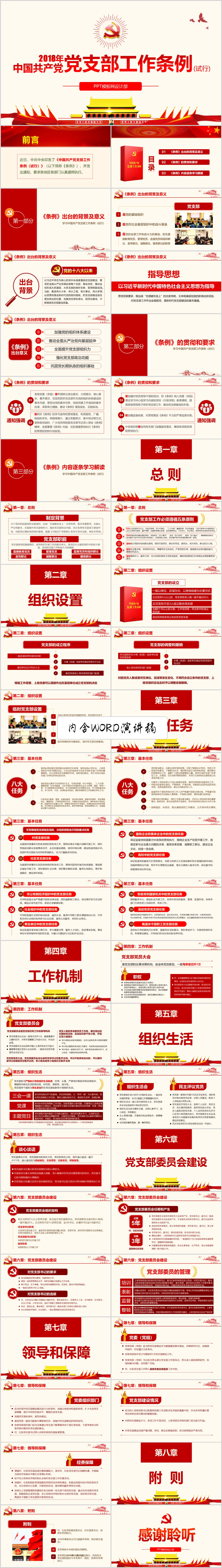 2018中国共产党党支部工作条例党建党政党课党员学习解读PPT模板(含WORD演讲稿