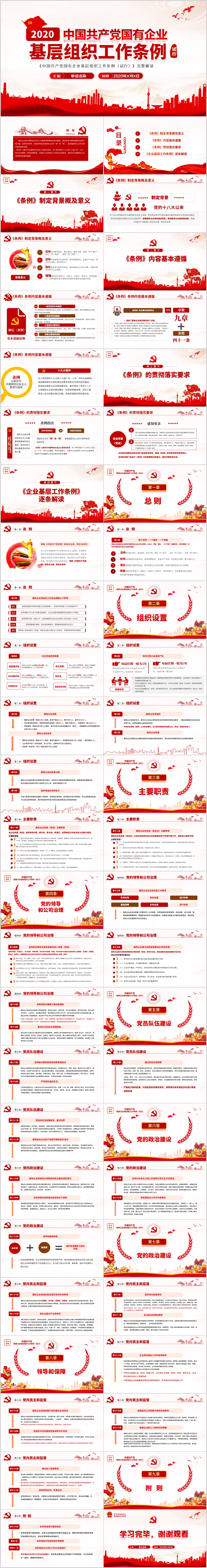 2020年中国共产党国有企业基层组织工作条例(试行)党课PPT模板(内含WORD演讲
