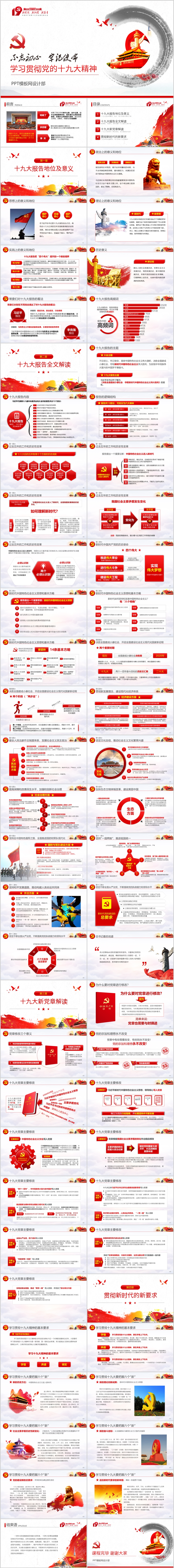 中国风学习贯彻十九大会议精神党支部党员党课PPT模板
