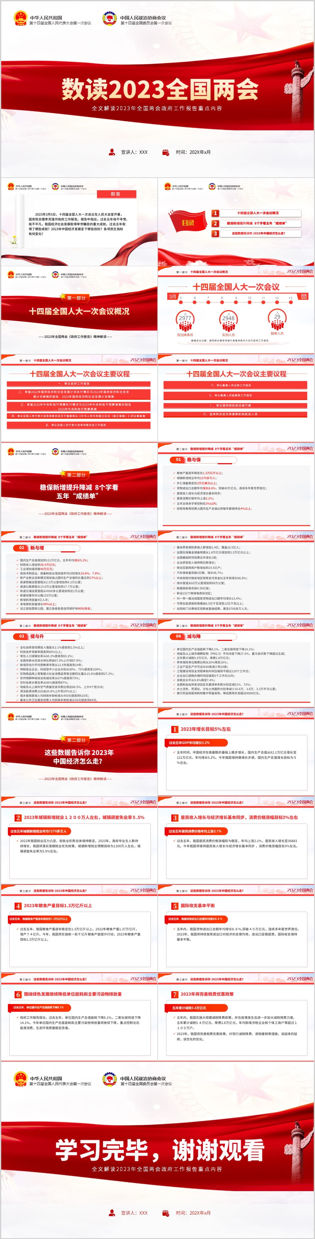 学习聚焦2023全国两会精神政府工作报告数读两会党课ppt模板(内含WORD演讲稿)