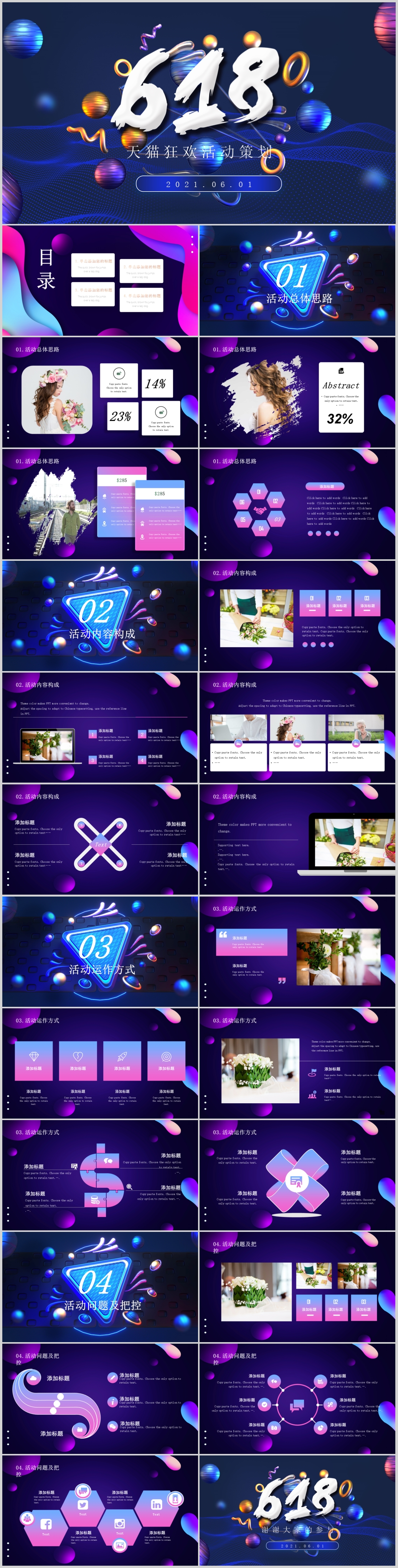 简约蓝色618电商粉丝狂欢购物节策划活动宣传P