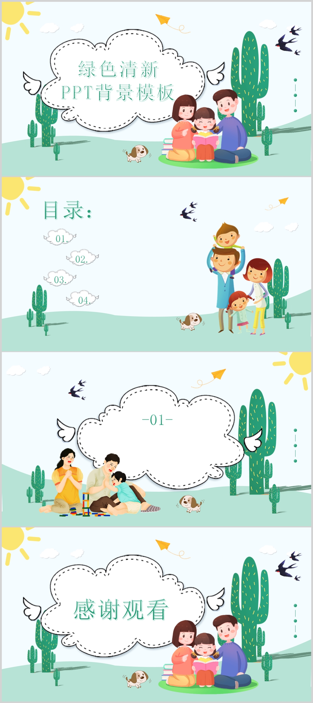 幼儿园绿色清新可爱卡通通用PPT模板PPT背景素材