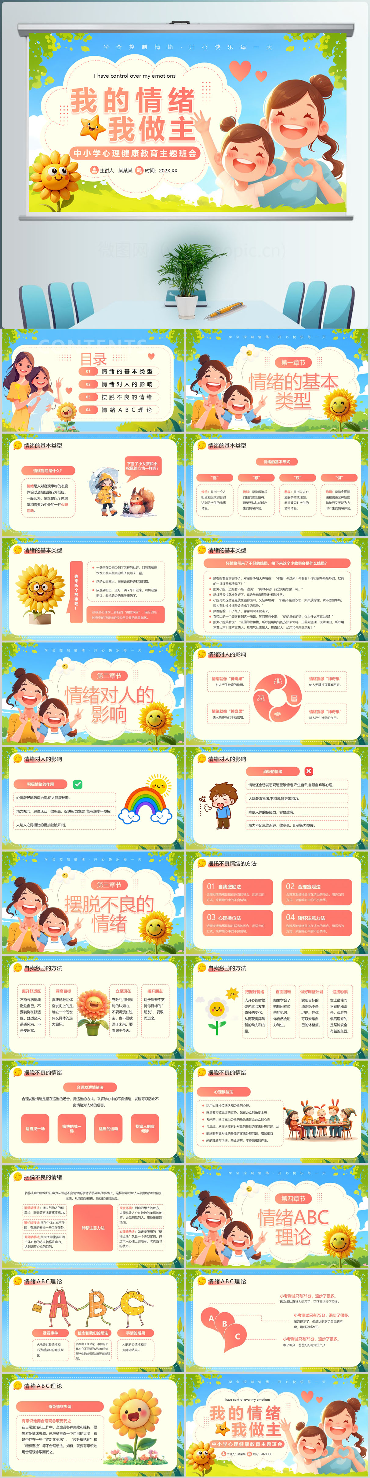 蓝色卡通风心理健康教育主题班会PPT模板设计
