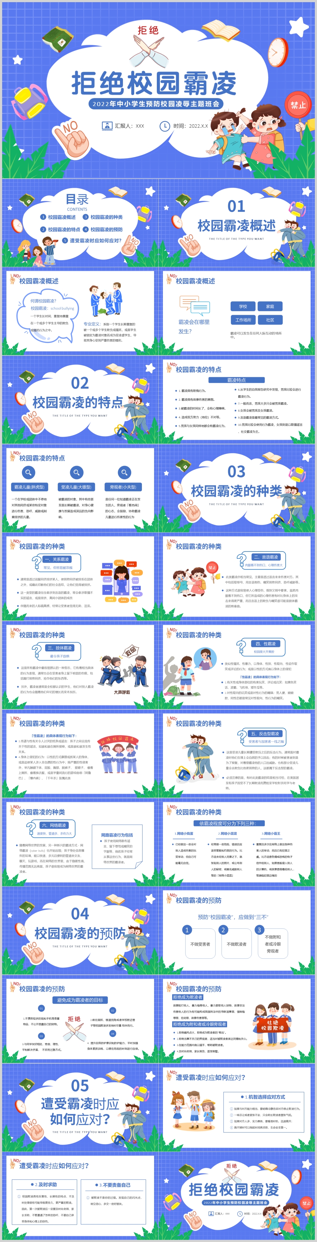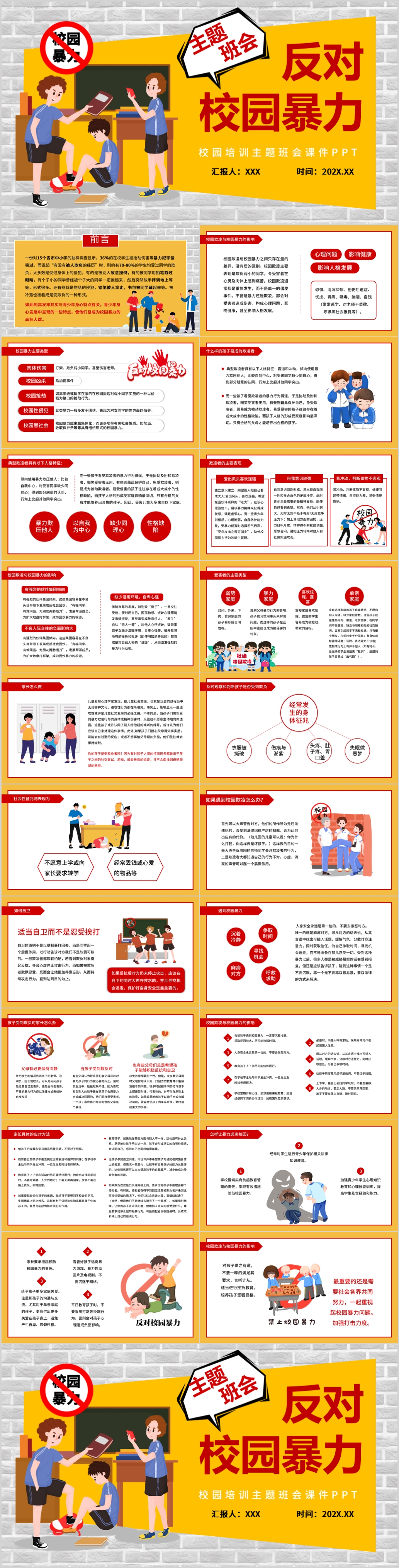 卡通反对校园欺凌校园暴力主题班会家长会ppt模