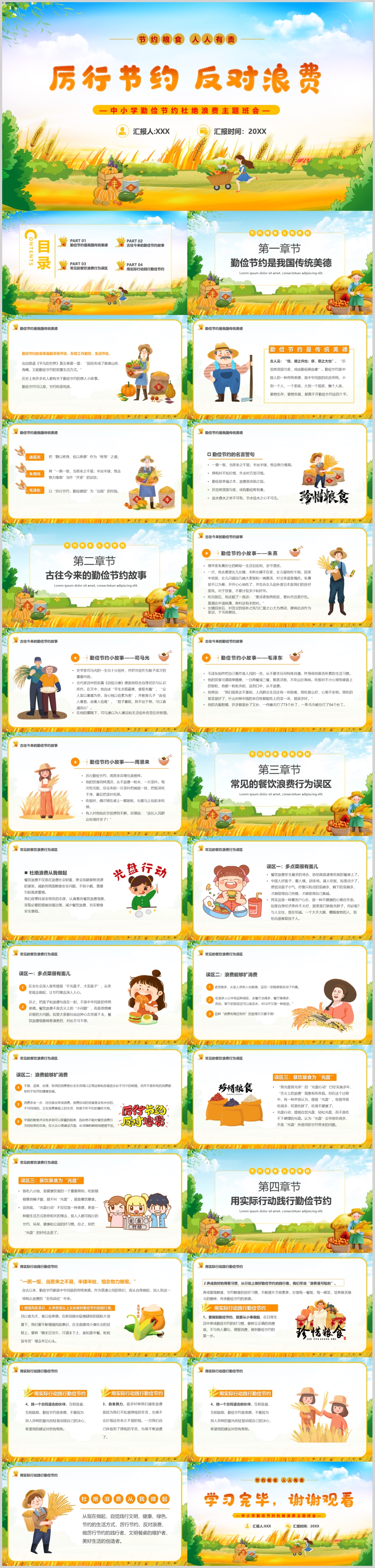 卡通节约粮食坚决制止餐饮浪费行为主题班会课